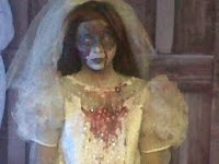 Dan saat di buka sesosok pocong terlihat dengan tampang hancur dan kafan berdarah-darah